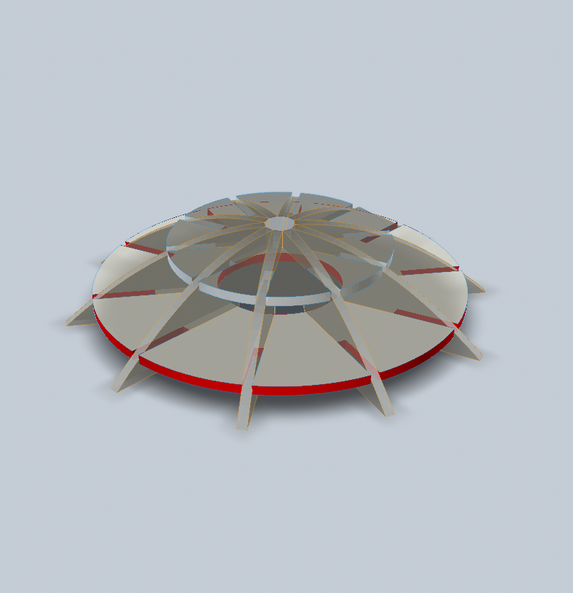 The simple hat structure was modeled in Fusion360, then put through Slicer for Fusion 360 with a radial slice to get the layout, which we could then laser cut from cardboard.